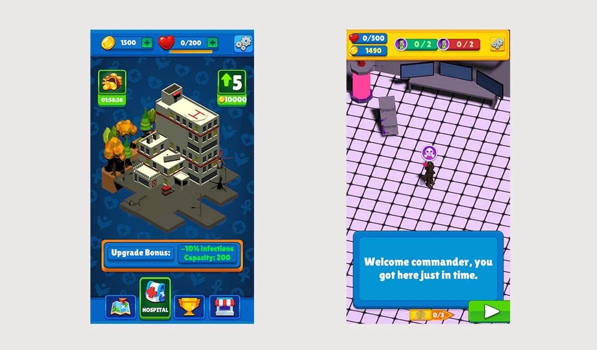 Purple clouds surrounded the entire city. More pand more eople are getting sick every second. Only you and your new powerful injection can help them.