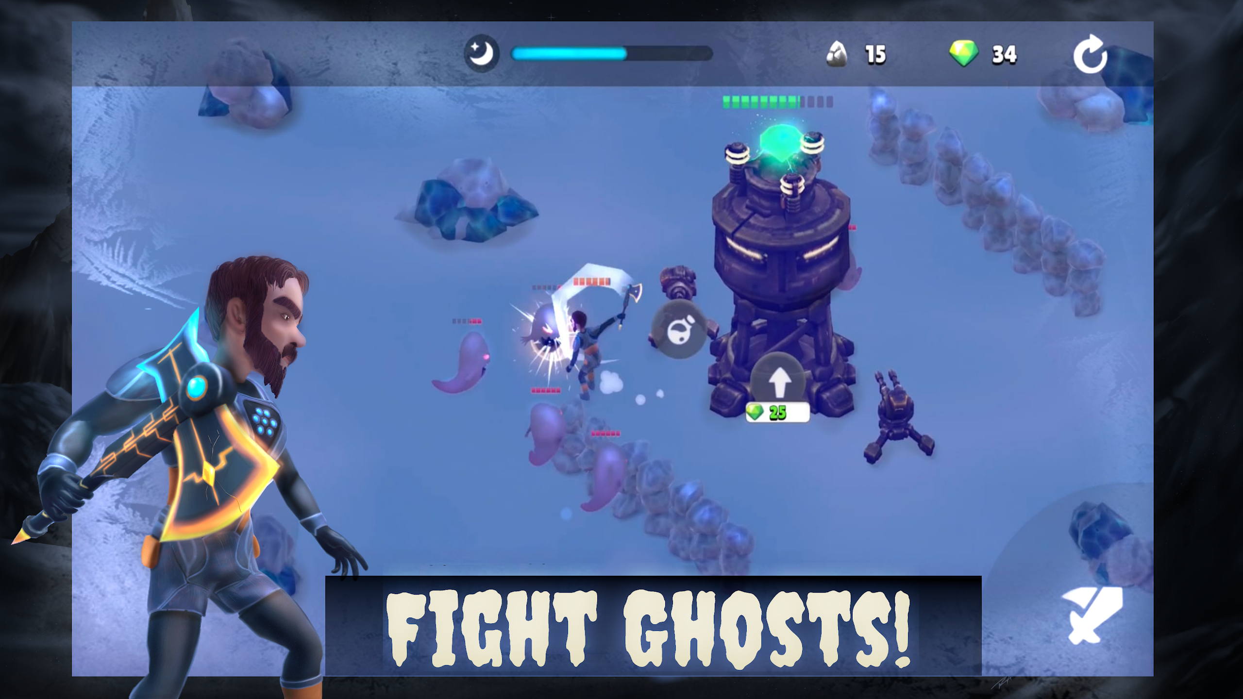 In Phantom Town, the fate of your town hall hangs in the balance as hordes of enemies descend upon it with malicious intent. Your task is to gather resources scattered throughout the town, from rocks to precious gems, in order to fortify your defences and fend off the impending onslaught.